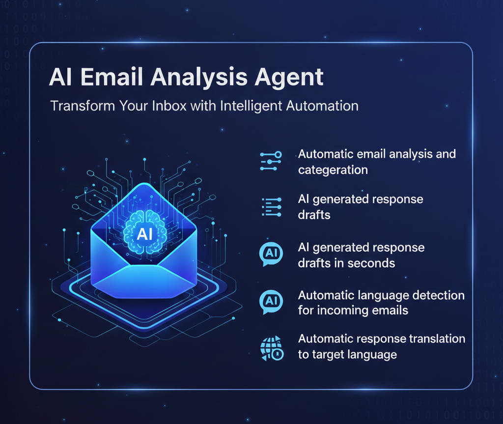 Egy modern, AI-alapú Email Ügynök segít, hogy ügyfélszolgálatos csapata gyorsabban, hatékonyabban és pontosabban válaszoljon az ügyfeleknek. Automatikus kategorizálás, válaszvázlat készítés, rendelés lekérdezés és többnyelvű támogatás - minden egy helyen.